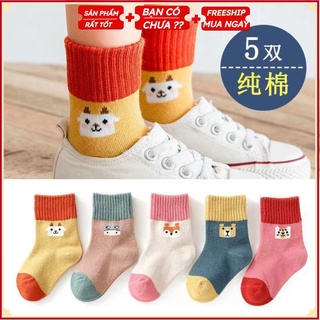 Set 5 đôi tất bé gái cotton thu đông cho bé từ 1 đến 12 tuổi - set vớ cho bé