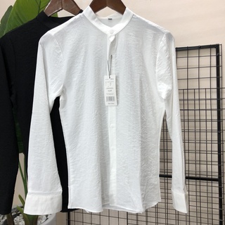 Áo sơ mi TRAZ trắng đũi nam dài tay cổ tàu, dáng hàn chất đũi thoáng mát trẻ trung đi chơi đi biển du lịch