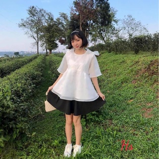 Áo baby doll cổ tròn buộc nơ Áo dáng xoè siêu xinh luôn ạ