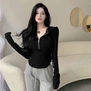 COZOK Áo thun hoodie tay dài phối khoá kéo
