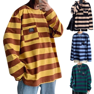 Áo Thun Dài Tay Họa Tiết Sọc Ngang Cho Cặp Đôi