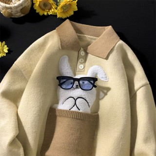 Áo Sweater Cổ Polo Họa Tiết Hoạt Hình Phong Cách Hong Kong Cho Cặp Đôi