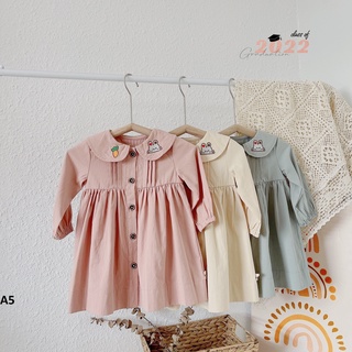 Áo khoác váy cổ sen - Áo khoác chất thô kaki thêu họa tiết thỏ- cà rốt cho bé gái- A5