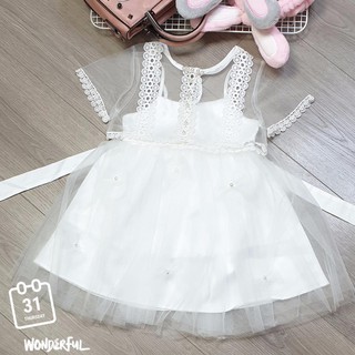 Bộ đầm trắng phong cách hanbook kèm áo khoác ren bé gái