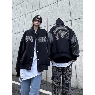 Áo Khoác Bomber FORGET Màu Đen Tay Da Form Rộng unisex