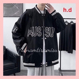 Áo Khoác Bomber A SAO cúc bấm nam nữJacket Unisex Chất nỉ vs gió Form <55kgÁo Bóng Chày Phong cách Thể thao