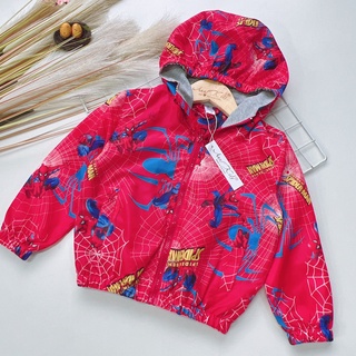 Áo khoác gió dù 2 lớp in người nhện spiderman size dại cho bé trai 25-50kg