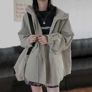 Áo Khoác Gió Ngắn Dáng Rộng Có Nón Cổ Đứng Thời Trang Xuân Thu Cho Nữ ES8Q