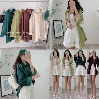 Áo sơ mi phom rộng khoác ngoài ❤️ICOTTON❤️ áo sơ mi nữ mỏng voan chiffon xuyên thấu dài tay, áo đi biển, đi chơi