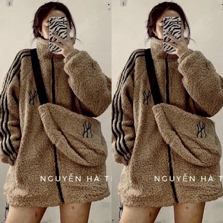 [CÓ ẢNH THẬT] Áo Khoác Lông N Y Kèm Túi Chéo- Áo Khoác Lót Lông Nâu Sang Chảnh Form Rộng Unisex