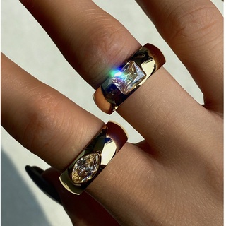Nhẫn Nữ Bản To Đính Đá Nhân Tạo Titan Ko Đen TT 4380