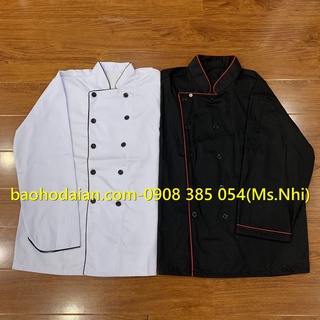 Áo đầu bếp dài tay vải kaki thoáng mát phối viền đen sang trọng