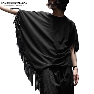 Áo thun kiểu INCERUN tay cánh dơi phối tua rua màu đen thời trang cá tính dành cho nam