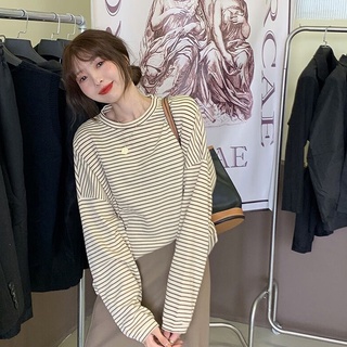 Áo Thun Len Tay Ngắn Dáng Ôm Họa Tiết Kẻ Sọc Thời Trang Cho Nữ