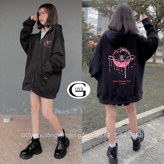 Áo khoác Hoodie nỉ FE PINK PLANTE MOON Dây Kéo form rộng ulzzang Unisex áo nỉ bông nữ AKN24 GOVA