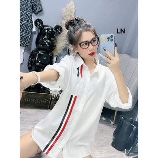 FREESHIP ÁO SƠ MI CỔ NƠ VIỀN ĐEN FORM THỤNG