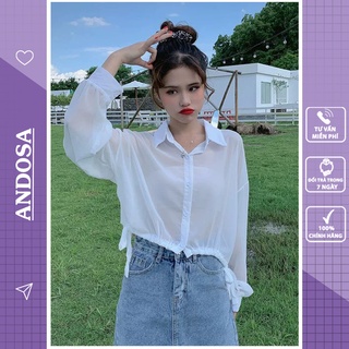 Áo sơ mi nữ croptop kiểu cột dây tay dài form rộng vải mỏng hàng Quảng Châu ANDOSA SM23