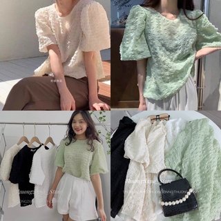 [Ảnh thật/Video]Áo sơ mi xốp sần Smile tay bồng form to bay bay tiểu thư Áo sơ mi cổ tròn hàn quốc