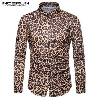 Áo Sơ Mi INCERUN Tay Dài Hoạ Tiết Da Báo Thời Trang Nam