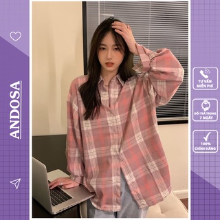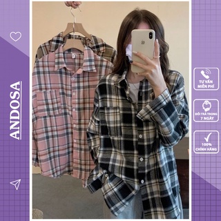 Áo sơ mi nữ form rộng kẻ caro tay dài đẹp hàng nhập Quảng Châu ANDOSA SM02