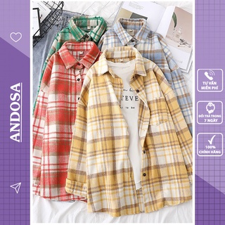 Áo sơ mi kẻ caro nữ form rộng tay dài kiểu đẹp hàng Quảng Châu ANDOSA SM04