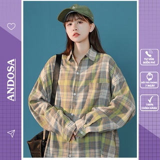 Áo sơ mi unisex form rộng tay dài kẻ caro đẹp hàng Quảng Châu ANDOSA SM09