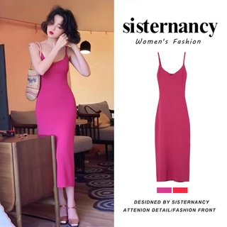 Đầm Hai Dây Dệt Kim Ôm Dáng Cổ Chữ V Quyến Rũ Cho Nữ SBS