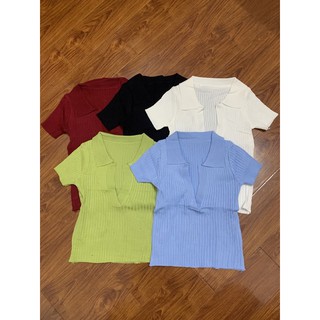 áo len dệt kim croptop cổ V bẻ xinh iu - mỏng (347-2#)