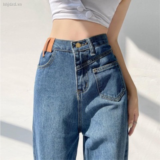 Quần jean chín tấc ống rộng lưng cao dáng suông thời trang xuân thu phong cách Mỹ thiết kế mới dành cho bạn nữ