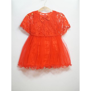 Đầm voan tiểu thư kèm áo choàng ren đỏ bé gái diện Noel và tết