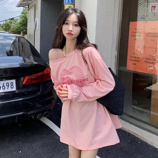 Áo thun COZOK tay dài form rộng trễ vai phối dây xích