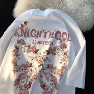 SELVZE Áo Thun Oversize Tay Ngắn Cổ Tròn Bằng cotton Nguyên Chất in Họa Tiết Vintage Độc Đáo