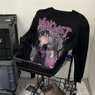 Áo Thun Dài Tay Oversize Cổ Tròn In Chữ Thời Trang Nhật Bản Dành Cho Nam / Size M-5XL