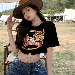 Áo Croptop Áo Thun Tay Lỡ Thiết Kế Áo Thun Lửng Ngắn Tay Phong Cách Hàn Quốc Dành Cho Nữ