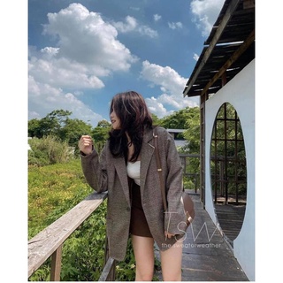 [Ảnh thật] Áo khoác vest kẻ dạ dáng rộng phong cách Hàn Quốc