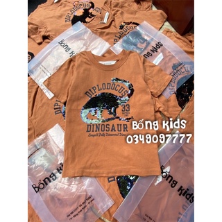 Áo Phông Bé Trai Khủg Long Sequin Nâu Cam HaM