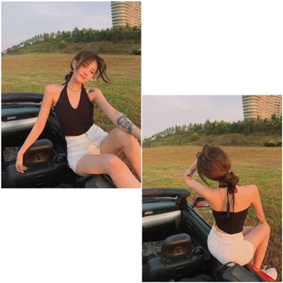 DUNEA Áo Croptop Cổ Yếm Quyến Rũ