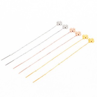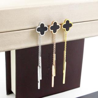 Bông Tai Cỏ 4 Lá Chuỗi Dài Titan Ko Đen TT 3525