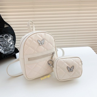 Balo Mini Họa Tiết Bướm Kèm Túi Nhỏ Xinh Xắn | BALO01 | Combo Balo Da Màu Hồng, Đen, Trắng Đi Chơi, Đi Học Và Cafe