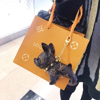 Móc khóa hình chó in logo LV sang trọng kèm túi đựng chìa khóa