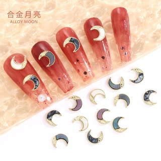 Miếng Dán Trang Trí Móng Tay Bằng Hợp Kim Hình Mặt Trăng Phong Cách Nhật Bản