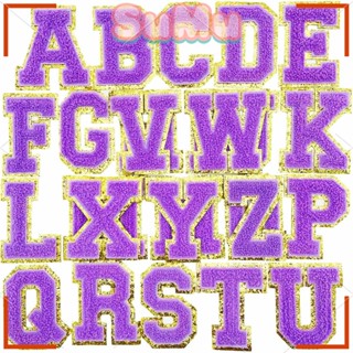 SUMU Sticker Ủi Thêu Chữ Cái Tiếng Anh Màu Tím