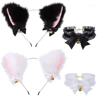 Băng đô phối lông kiểu tai thỏ đính nơ phong cách lolita dễ thương cho nữ