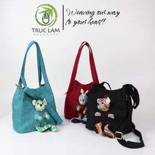 Túi Xách Tay Đeo Chéo Vải Gai Mỏng Gắn Thú Nhồi Bông - Trúc Lâm Handmade