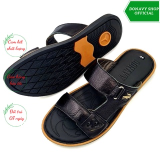 Dép Hai Quai Nam Da Bò 100% Đính Khoá Cá Sấu Chống Gỉ - May Quai Chắc Chắn Bao Bền D.2qcs