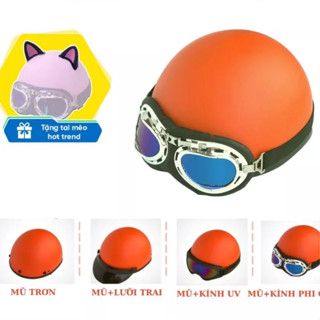 Mũ bảo hiểm màu cam xinh tươi kèm kính phi công cute tặng chong chóng