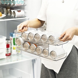 Khay 2 Tầng Trong Suốt Tự Xoay Đựng Lon Nước Uống Cho Tủ Lạnh Nhà Bếp Giá Đỡ