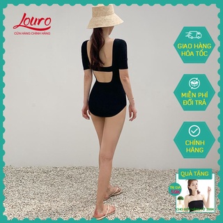 Áo bơi nữ 1 mảnh liền kín đáo Louro, kiểu bikini đi biển tay ngắn chun eo phong cách đồ bơi hà BK4 - HÀNG CAO CẤP