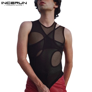 Áo liền quần INCERUN không tay vải lưới xuyên thấu gợi cảm cho nam
