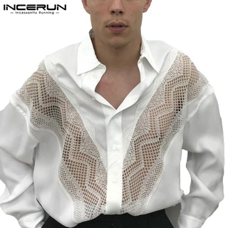 Áo sơ mi INCERUN phối ren xuyên thấu dài tay thời trang cho nam